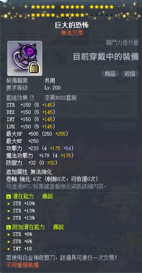 【巨大的恐怖】25星36%力附加14%力全B巨大 / 漆黑裝 / 終身裝 / 打王用 / 力量