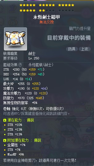 【永恆劍士鎧甲】22星36%力附加14%力永恆劍士上衣/終身裝/打王用/250雙傳劍士防具