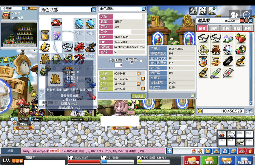 【130等、狙擊手_神射手】130級 弩手/狙擊手|3件套・13力虎披・20瓶洗血・1600+雪花・1億+楓
