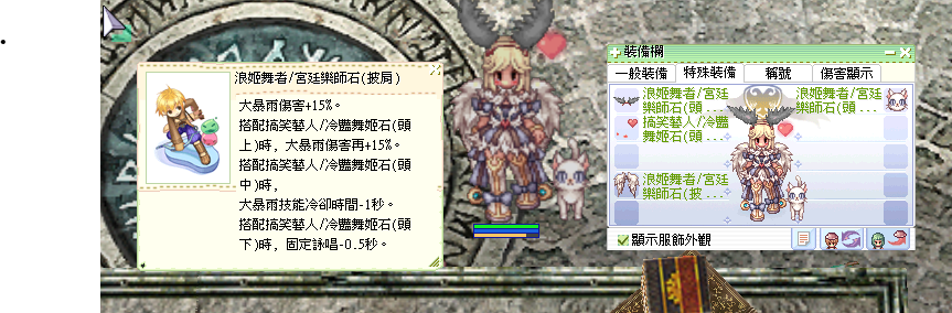 浪姬舞者/宮廷樂師服飾套 2.0減固詠0.5s頭中提高傷害頭上吸收SP