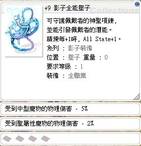 +9影子全能耳環 +9影子全能墜子 附魔 抗中10% 2500實收
