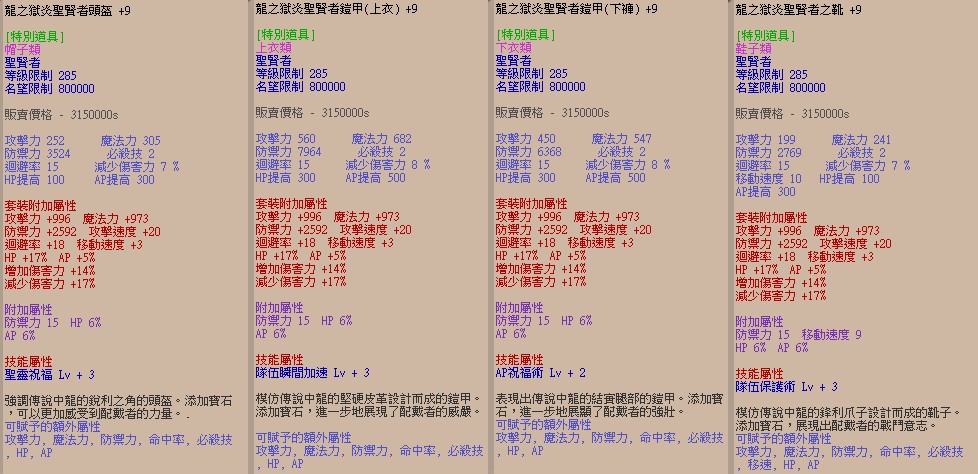 龍之獄炎聖賢者鎧甲(下褲)+9