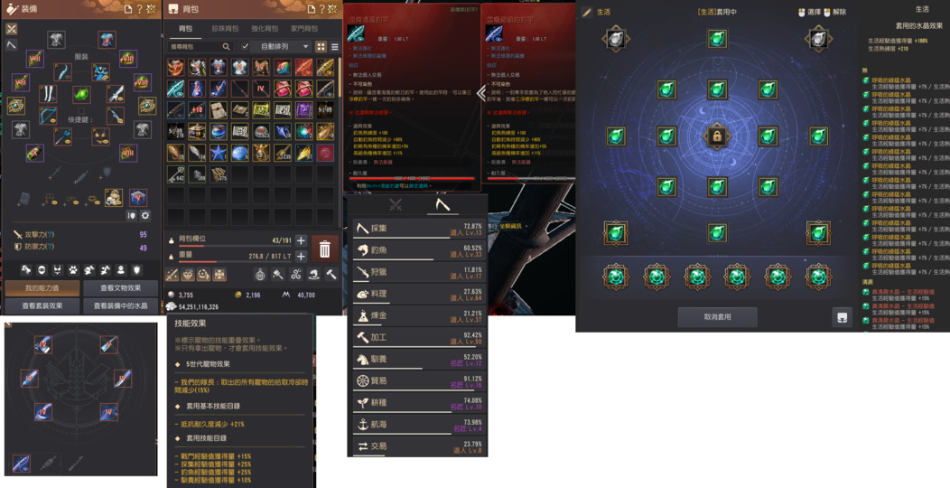 不玩生活的話 裝備加身上材料全賣能換2兆左右 可以點X戰鬥裝基本上除非你保底最少能上一件