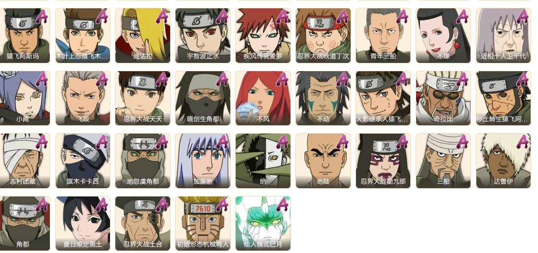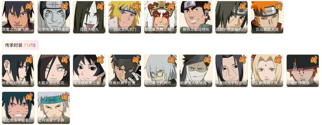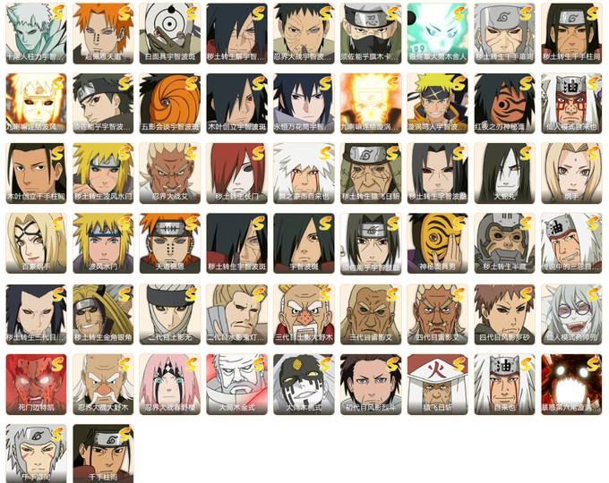 套餐21:【4S+金币】豪杰自来也s+百战水门s+佩恩s+永恒佐助s+忍战宁次A+5W金币=2500T