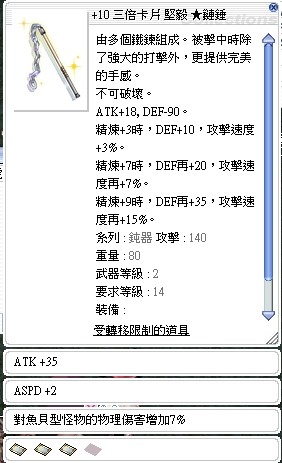 +10 ★鏈錘/星鏈錘 ATK35/ASPD2/魚貝7%頂攻速魚貝傷+3礦工