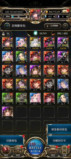 UID 1014419557,可以自行 google 【神魔之塔背包檢視器】看卡片狀況