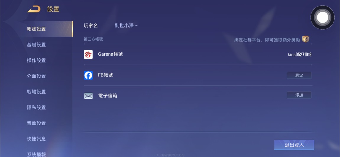 物品種類: 帳號