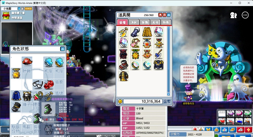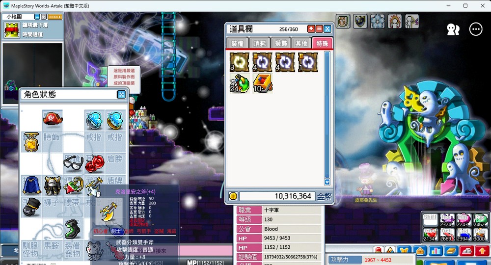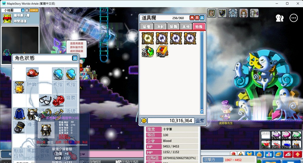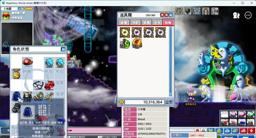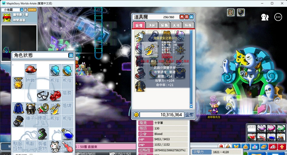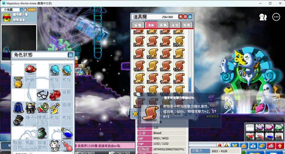 1~6技能全開 造型 寵物 3張AP捲 9張SP捲可洗 24復活 10喇叭 100多傳送石 包包360格