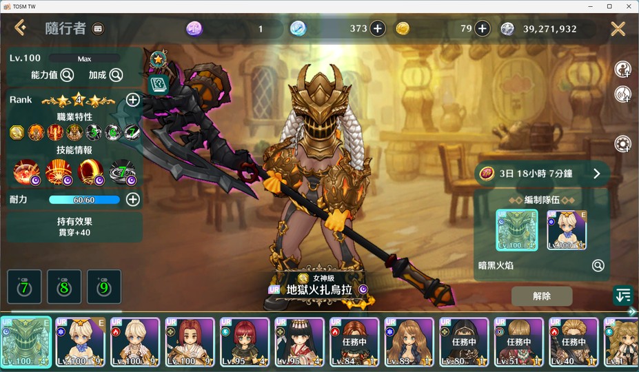 【100等】尤拉泰/9萬戰/牧師/UR*21/女神R5/女僕.扎烏拉R7/冰.火弓.神主R9