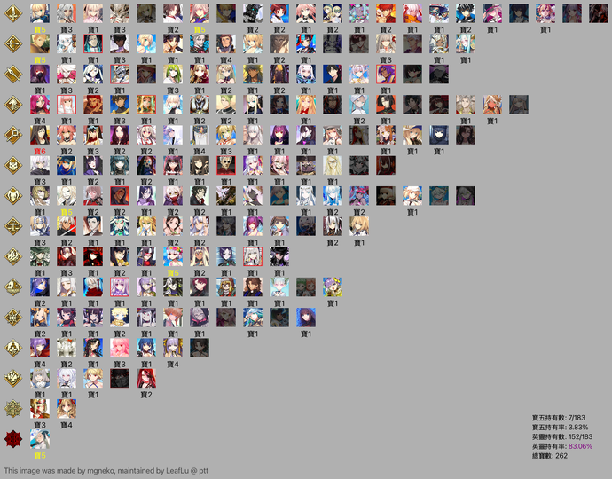 【184等】🐧日服高練五星152含寶具262🐧寶五宮本 金閃閃 所長 泳裝迦摩等多高寶