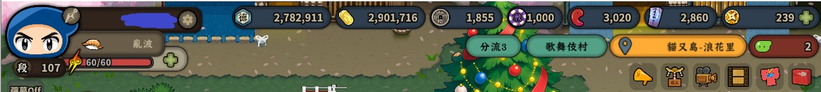 角色素質:德:2782911 金:2901716 寺錢:1855 戰籌:1000 勾玉:3020 御神符:2860 忍幣:239 修羅幣:4355