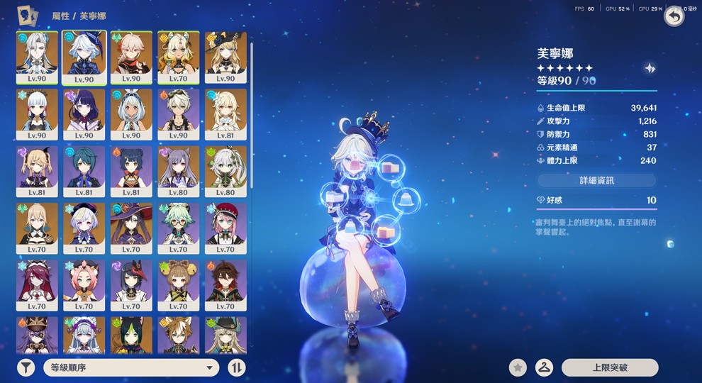 【女、58等、17金角、7金武】6+1水神.各個專武.完美畢業的芙.多隻角色大畢業.多原石可挖