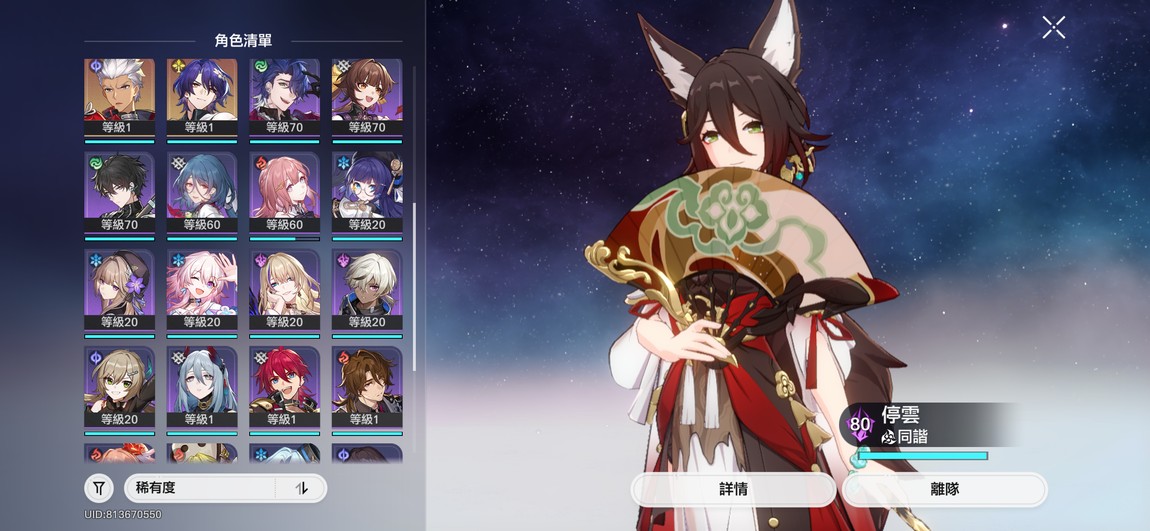 【男、65等、13金角、2金專】卡芙卡、銀狼都有專武 ,景元、遐蝶、布洛妮婭、花火(急售