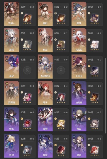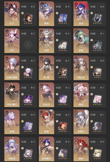 記憶隊:遐蝶6+5、長夜月2+1、緹寶2+1、風堇1+1
