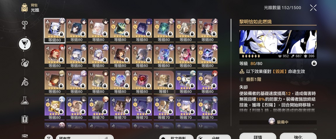 【女、70等、28金角、17金專】6+5景元6+5希兒1+1白厄知更鳥阮梅0+1星期日緹寶花火銀狼