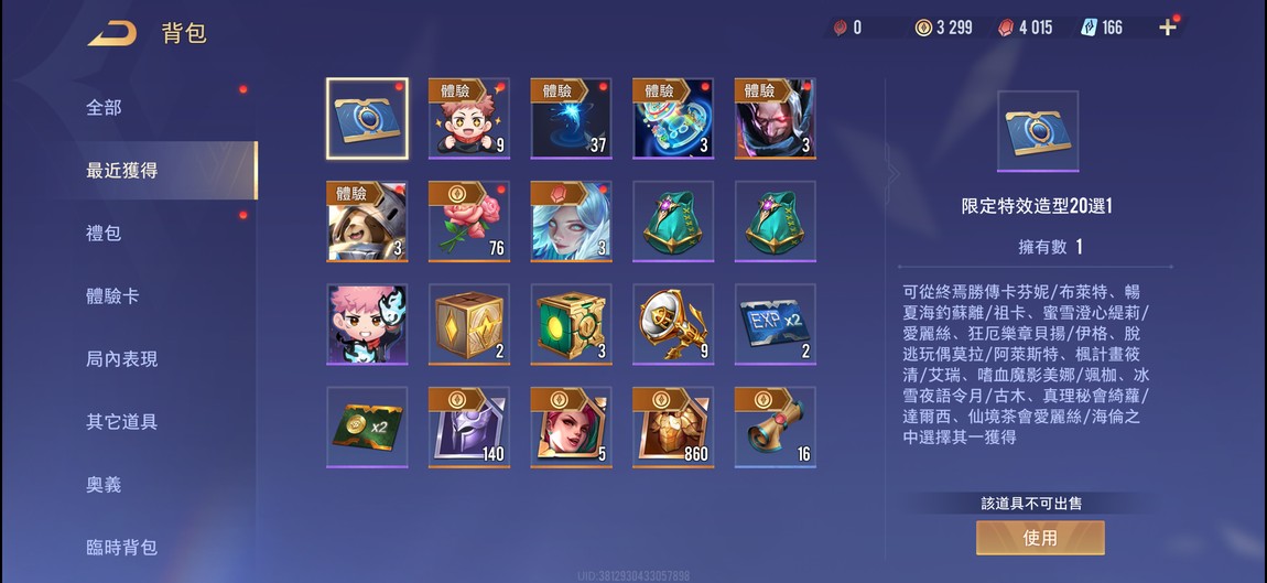 物品種類: 帳號