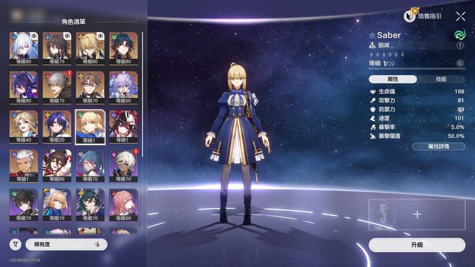 【男、68等、12金角、5金專】H2 花火|鏡流0+1|刃0+1|希兒|羅剎1+0|阮梅|SABER|生日未設