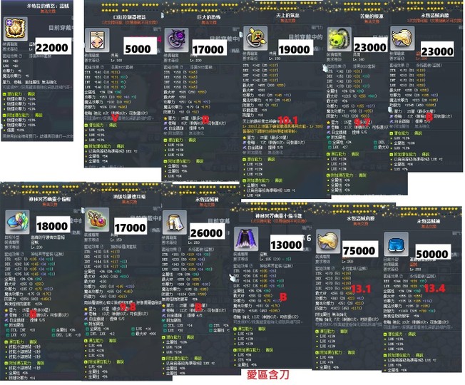 【永恆、頂培、漆黑、巨大、苦痛、眼罩】均13、主頂兩排、次頂三排、六排、LUK退谷