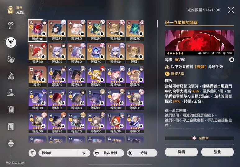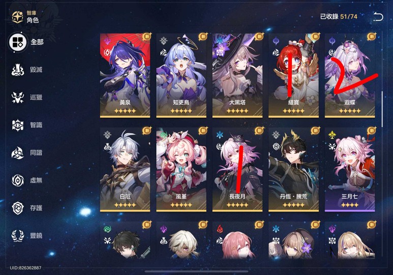 【女、70等、29金角、13金專】遐蝶2+2緹寶1長夜月1風謹大黑塔白厄