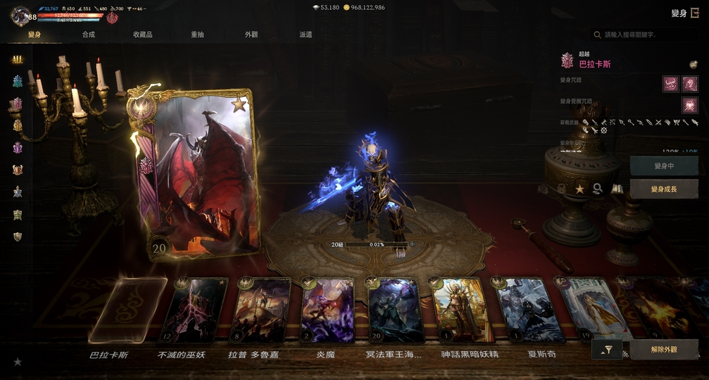 【變身】: 6金、20(含魔獸軍王巴蘭卡,青年班,哈珀多魯嘉,菈碧絲)