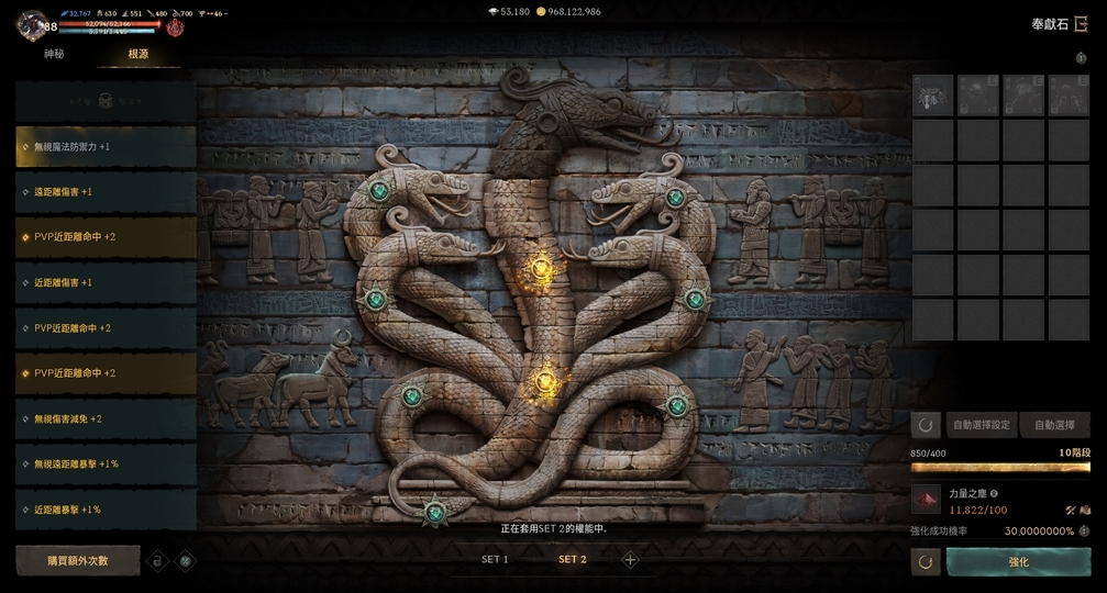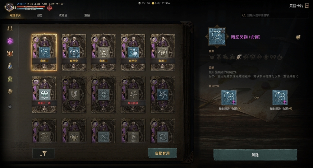 【防禦套】:血量52,181、攻/命487/698、防/魔防643/551(0DEX全點WIS)、減傷/PVP減傷224/85、暈命/抗暈55/138%