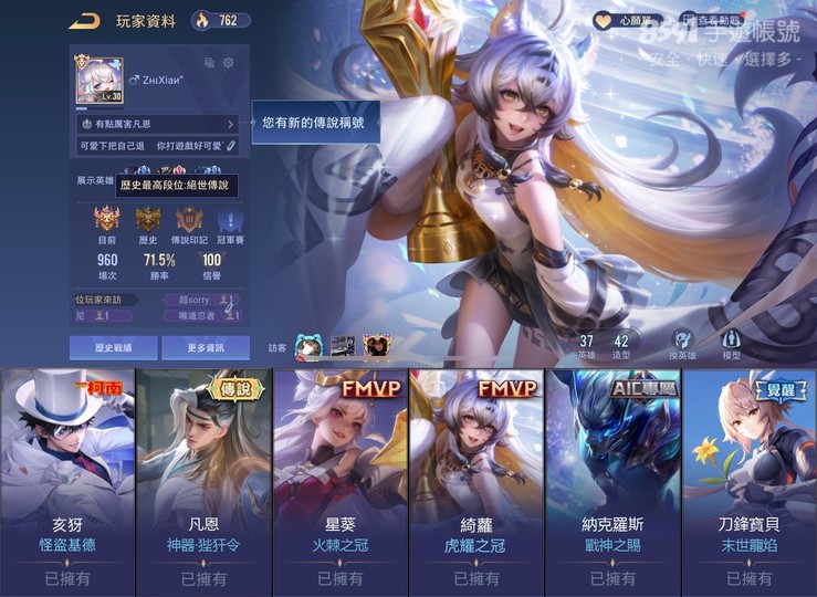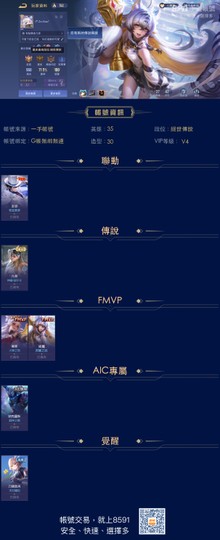 【G帳無綁無連、絕世傳說、V4、35英、30造】高勝率百星無無帳號