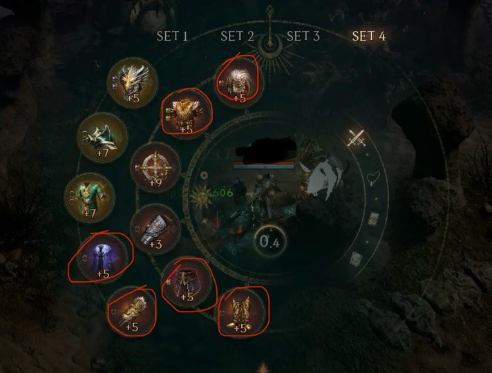 +5庫庫頭、+5祝庫庫甲、+5黑虎斗篷、+5庫庫手、+5庫庫靴、+5墮落脛甲、庫庫戒、神射項鍊