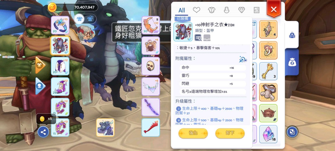 【初始號】110等女遊俠/+10喵星弓+10神星衣(名弓3)深淵龍坐騎/海神星+時間管理星