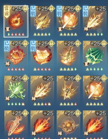 武器:【金】凌鋒/齋日/夜隱/鏡星,【紫】凝川/天火/玉茗