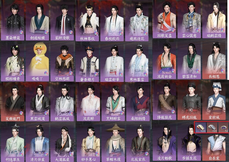 衣服:【金】猛志/深壑,【紫】雲起,【紅】猛志
