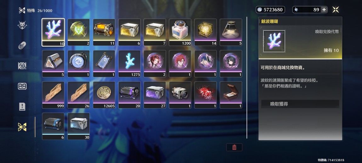 物品種類: 帳號