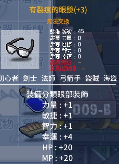 身上的裝備已清出了 剩下眼鏡以及90海賊帽還有上衣下褲