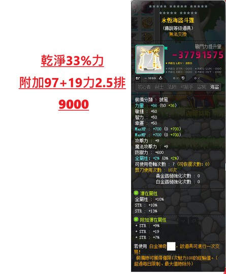 【平方】雙傳海盜永恆%力披風33%力+附加2.5排9/7+19力便宜小資退谷售