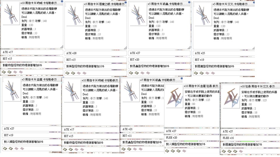 剩下+5卡塔勒拳刃 都高頂素質 需要那把請善用小窗 一次購買多把有優惠 都高頂素質