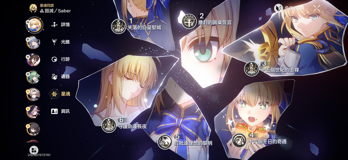 主C 6+5紅A、6+1 Saber、6+1黃泉、6+3刃、2+1大黑塔、2+1阿格萊雅、2+1流螢、、2+1龍丹、2+1鏡流