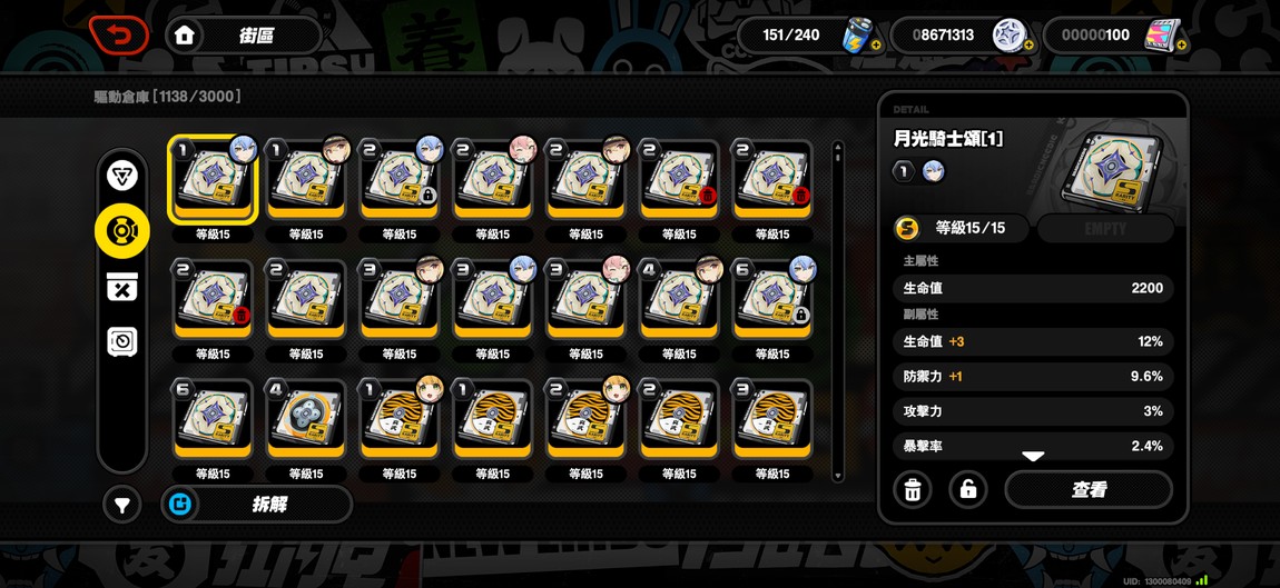 記憶戰艦:01遐蝶 11長夜月 10提寶 風瑾