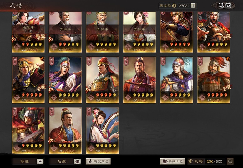 主打典藏滿紅富貴、特技齊全核張、sp周嘟嘟、群弓、三仙、高滿紅特技齊全北伐、高滿紅太尉