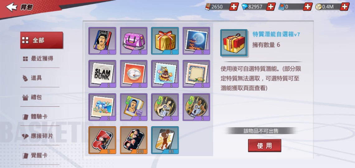特質任選箱1個。