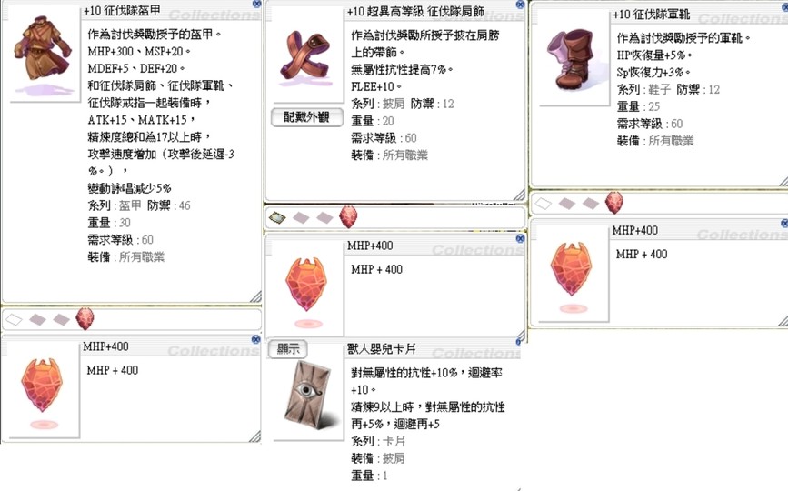 +10征伐隊盔甲~+10征伐隊肩飾~+10征伐隊軍靴~HP都+400~三件一套