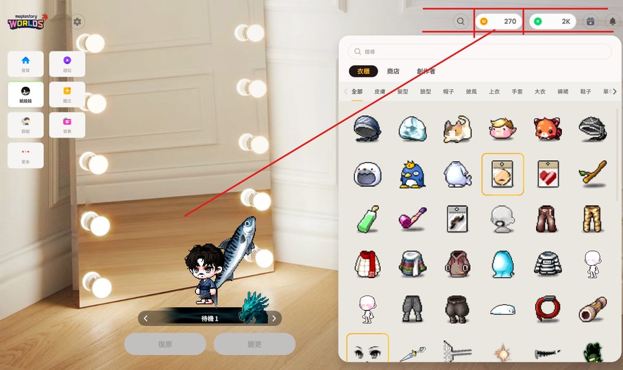 *現金道具:永久造型、永久寵物、wc幣270、付費造型