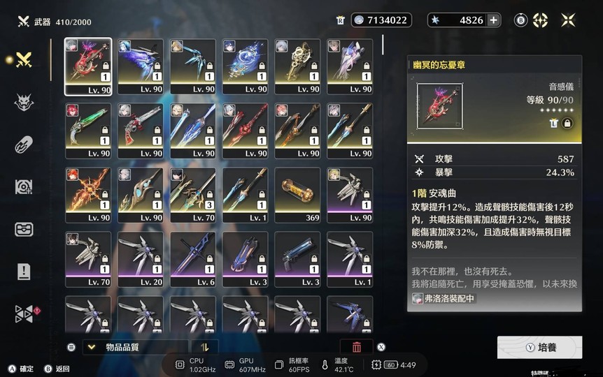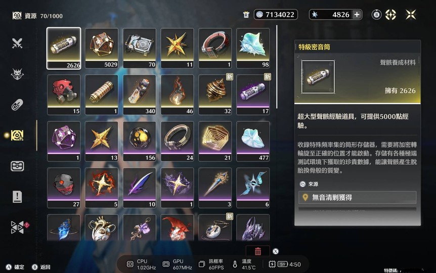 5. 養成資源非常夠 密音筒2626 協調器5029 體力藥水149