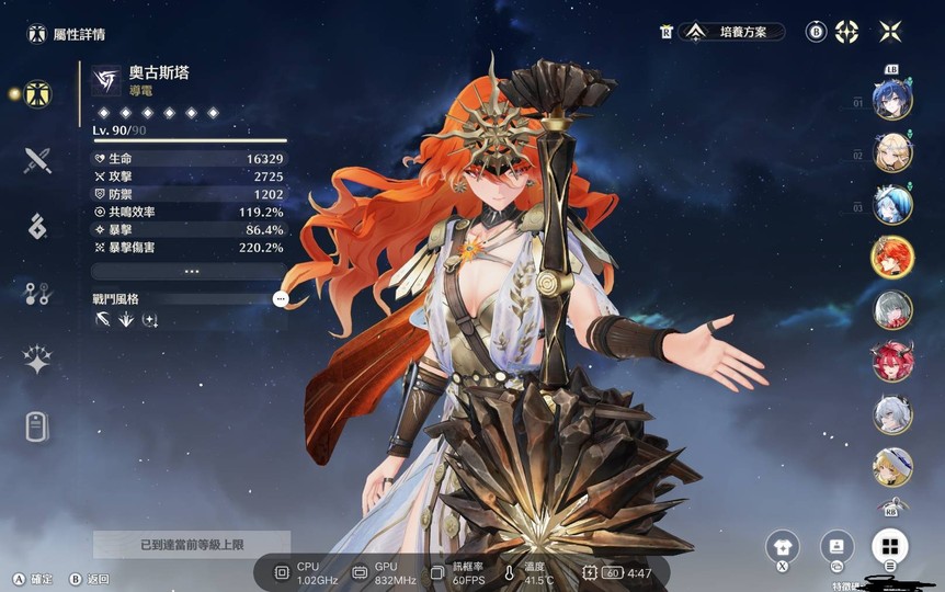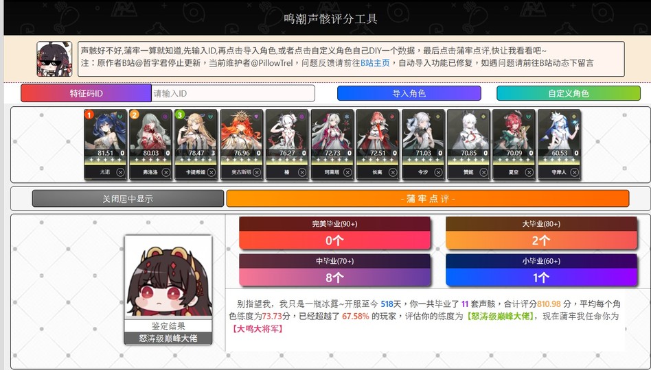 圖片中有個全角色的評分 基本上面板有五個雙爆 大概就是70分而已