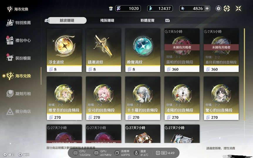 3. 彩珊瑚1020個 換算成抽數是127抽 換算成共鳴鏈可以換2.8鏈