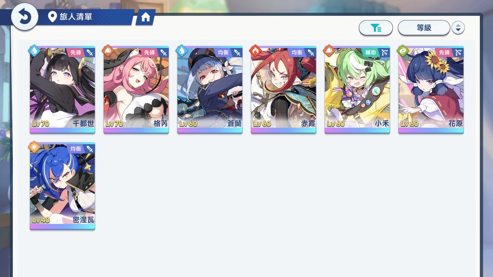 千都世2+1蒼蘭0格芮1小禾0+1赤霞0花原1密涅瓦0 有5隊地水火風光 有開通行證自選未選