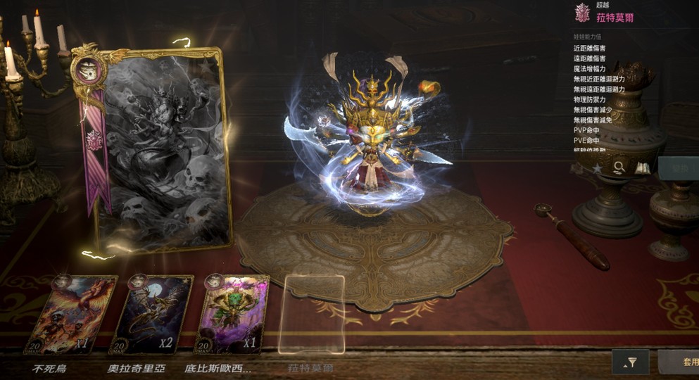 【素質】:血量83,460、攻/命665/850、防/魔防880/706、減傷/PVP減傷383/131、暈命/抗暈194/326%
