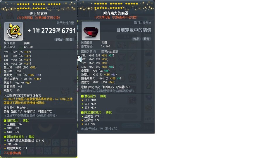 【附有魔力的眼罩】退谷雙傳%力眼罩 25星 36%力 附加 656 全B 白5 1.6w