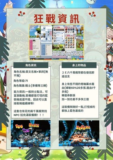 目前這帳號我還在遊玩,我還在練戰士目前快要72等 .我身上的裝備幾乎都沒有衝捲,都是打怪掉落的藍色好素質基底,建議練到90以上才開始衝捲治裝,但最近時間比較少想賣掉了