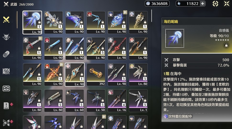 【80等、13金角、11金武】3+1卡提 3+1長離 3+1坎特 2+1樁 1+1尤諾 剩下0鍊 聲骸都畢業