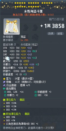 【永恆海盜斗篷】雙傳25星36%敏永恆海盜斗篷 附加97敏+1敏2.5排 白4全b~