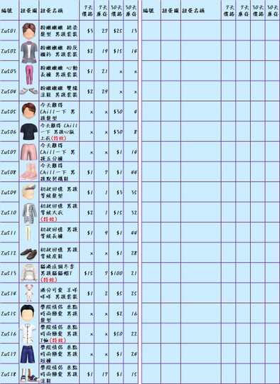 ★★需要請私訊或留言正確名稱(包含男生或女生的)及數量★★